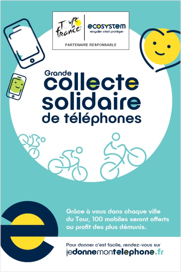 Ecosystem, l’éco-organisme en charge de la collecte et du recyclage des équipements électriques en France, s’associe pour la première fois au Tour de France 2020 en tant que « Partenaire Responsable » et organise à cette occasion, la 1ère grande collecte solidaire de téléphones et smartphones usagés, via le site Je donne mon téléphone.fr.