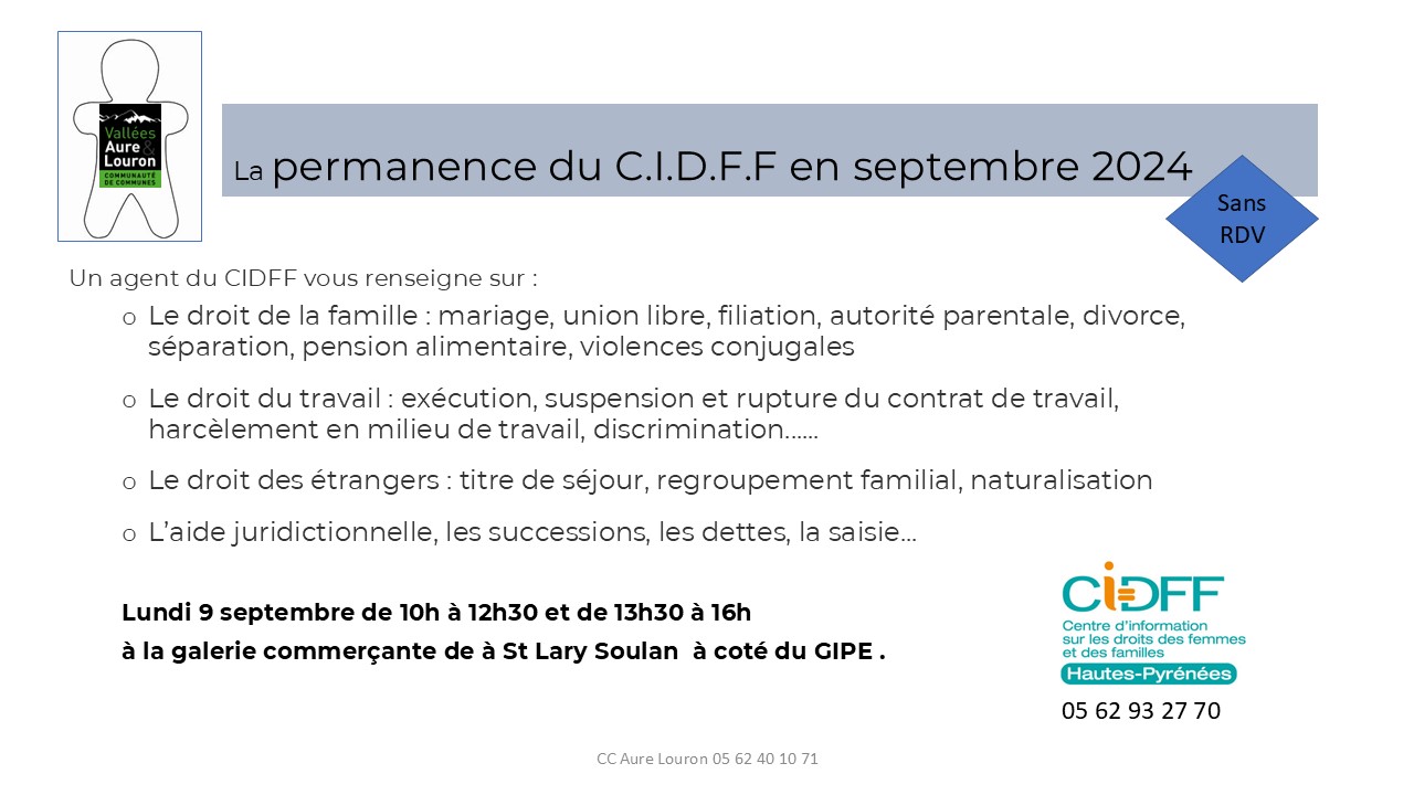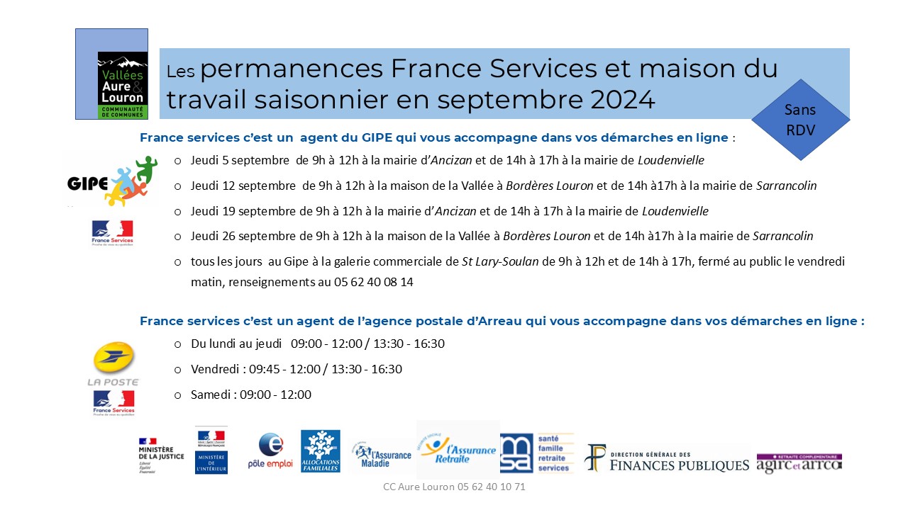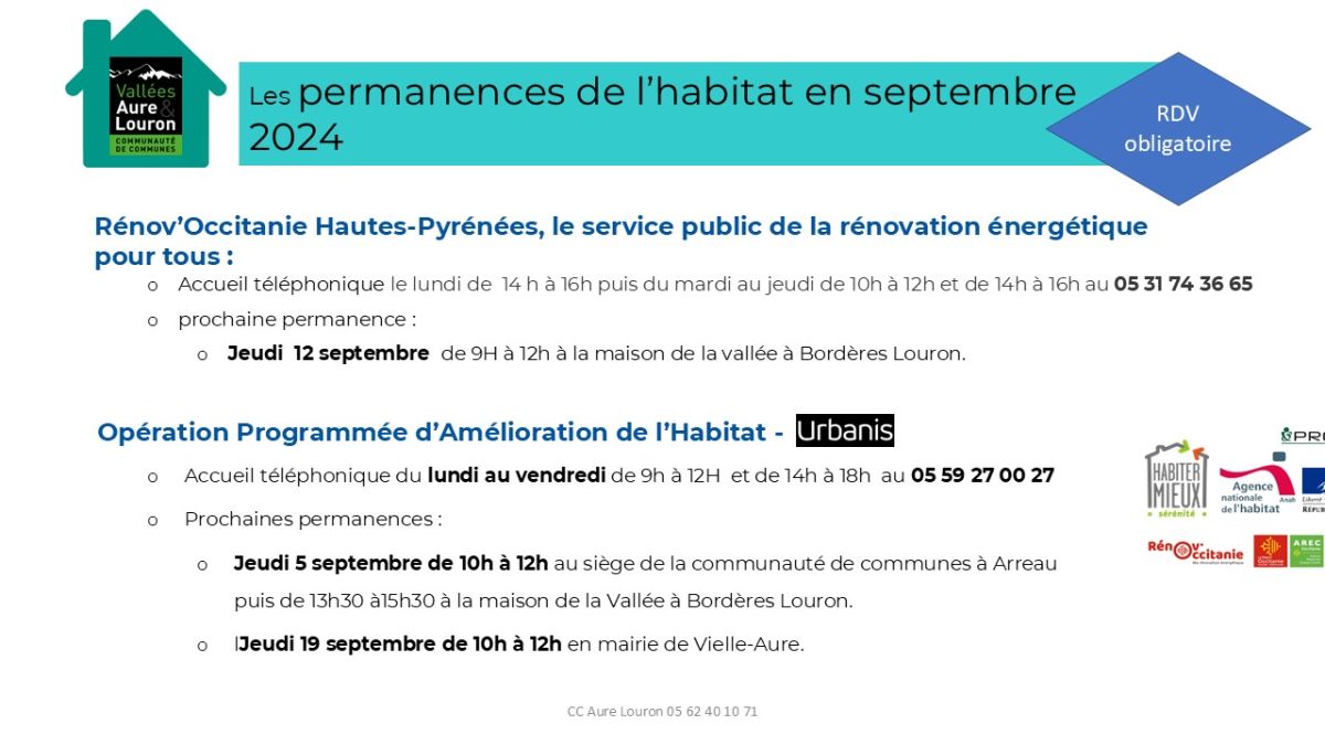 Les permanences en Septembre 2024 : Renov'Occitanie, OPAH, France Services, Maison du travail saisonnier, CIDDF, Mission Locale