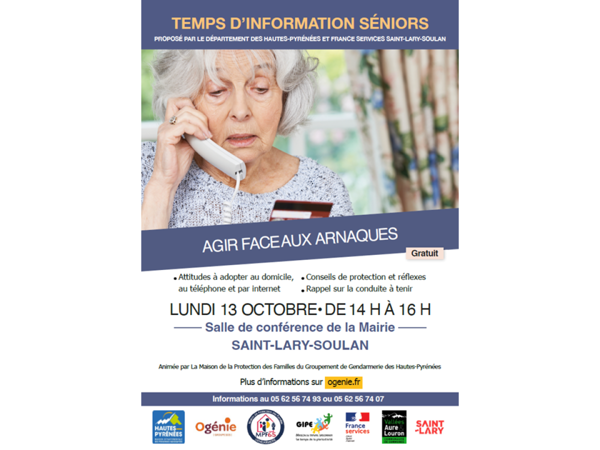 Temps d'information "agir face aux arnaques" à destination des seniors le lundi 13 octobre à Saint-Lary-Soulan